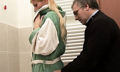 A beautiful blonde teenager from Germany gets her throat packed with warm cum