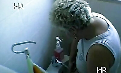 towheaded schoenheit schiebt sich riesen dildo in die muschi