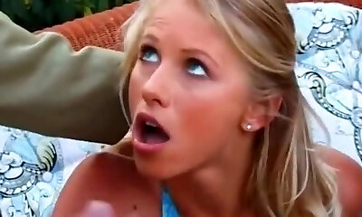 Amazing and Busty Super-steamy Blonde Cougar Gets Sprayed on Her Face and Boobs