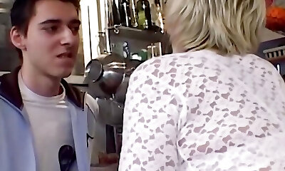 German Grandson Seduces old Grannie to Fuck in Kitchen