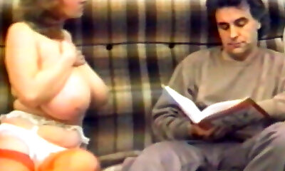 Home alone vintage platinum-blonde plays with her enormous dildo