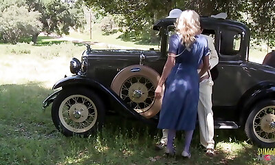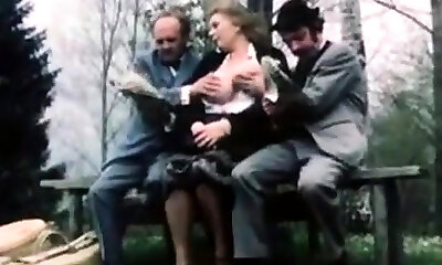 Desiree Cousteau, Joey Silvera in classic porno scene with threesome in the forest