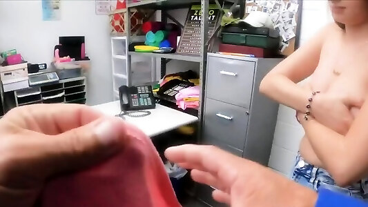 Bootie tearing up huge-chested teenage suspect at the back office