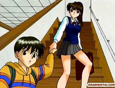 Huge-titted anime self masturbating in the shower