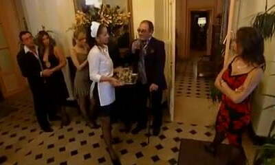 Super-naughty classic French maids having orgy with lords